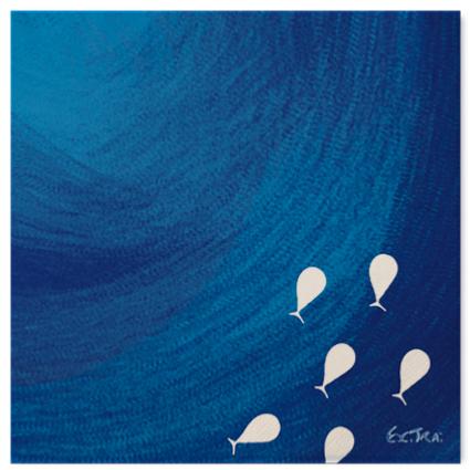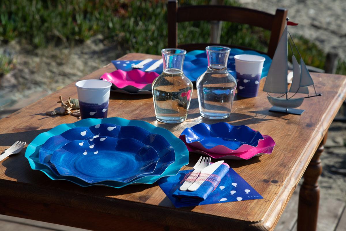 Tovagliolo in pura cellulosa 3 veli,33 x 33 cm, Made in Italy. fondo blu e decoro marino.