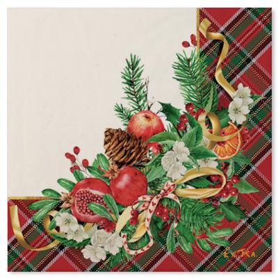 Tovagliolo in pura cellulosa 3 veli, 33 x 33 cm, Made in Italy. fondo bianco e decoro natalizio.