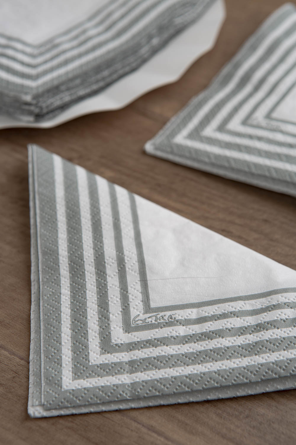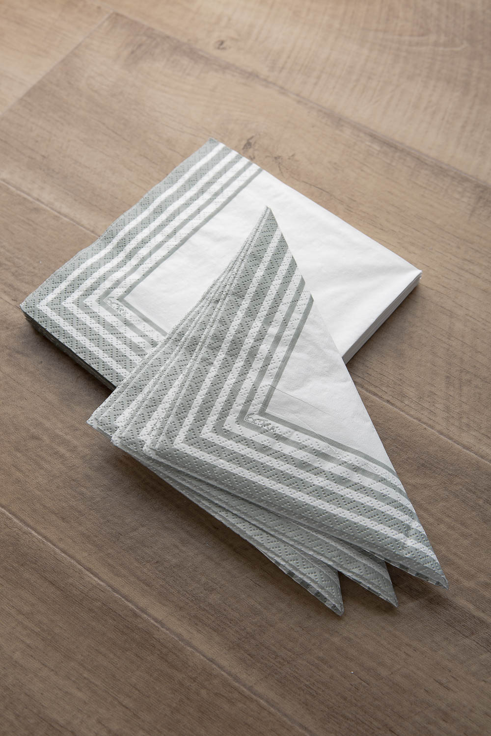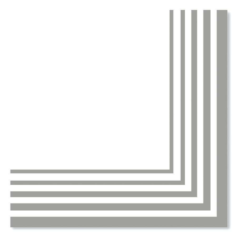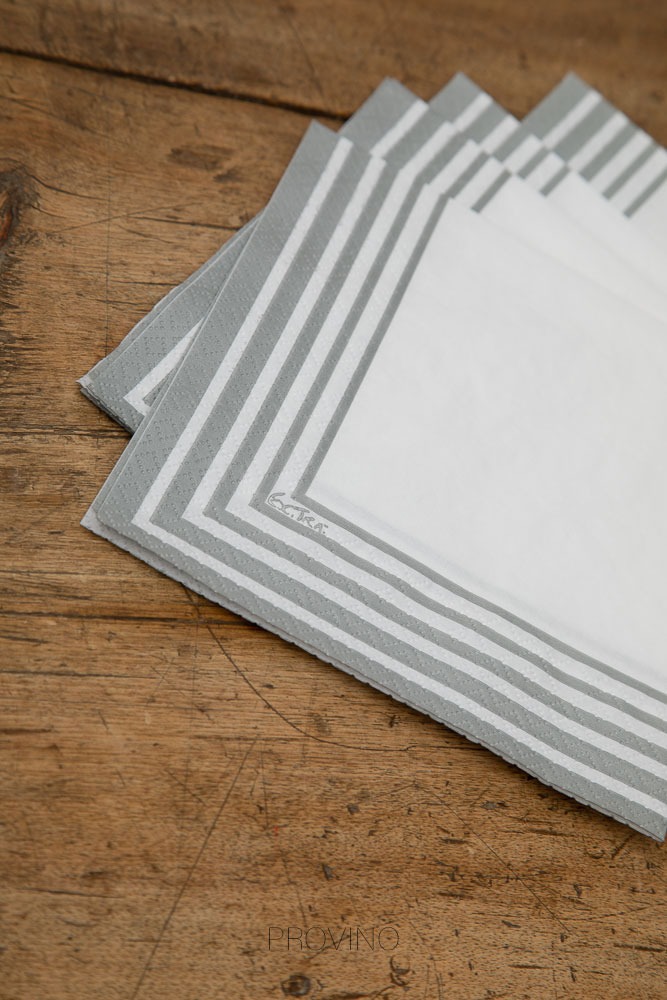 Tovagliolo in pura cellulosa compostabile 2 veli,33 x 33 cm, Made in EU, fondo bianco e righe colore grigio, Certificato OK COMPOST- TUV.