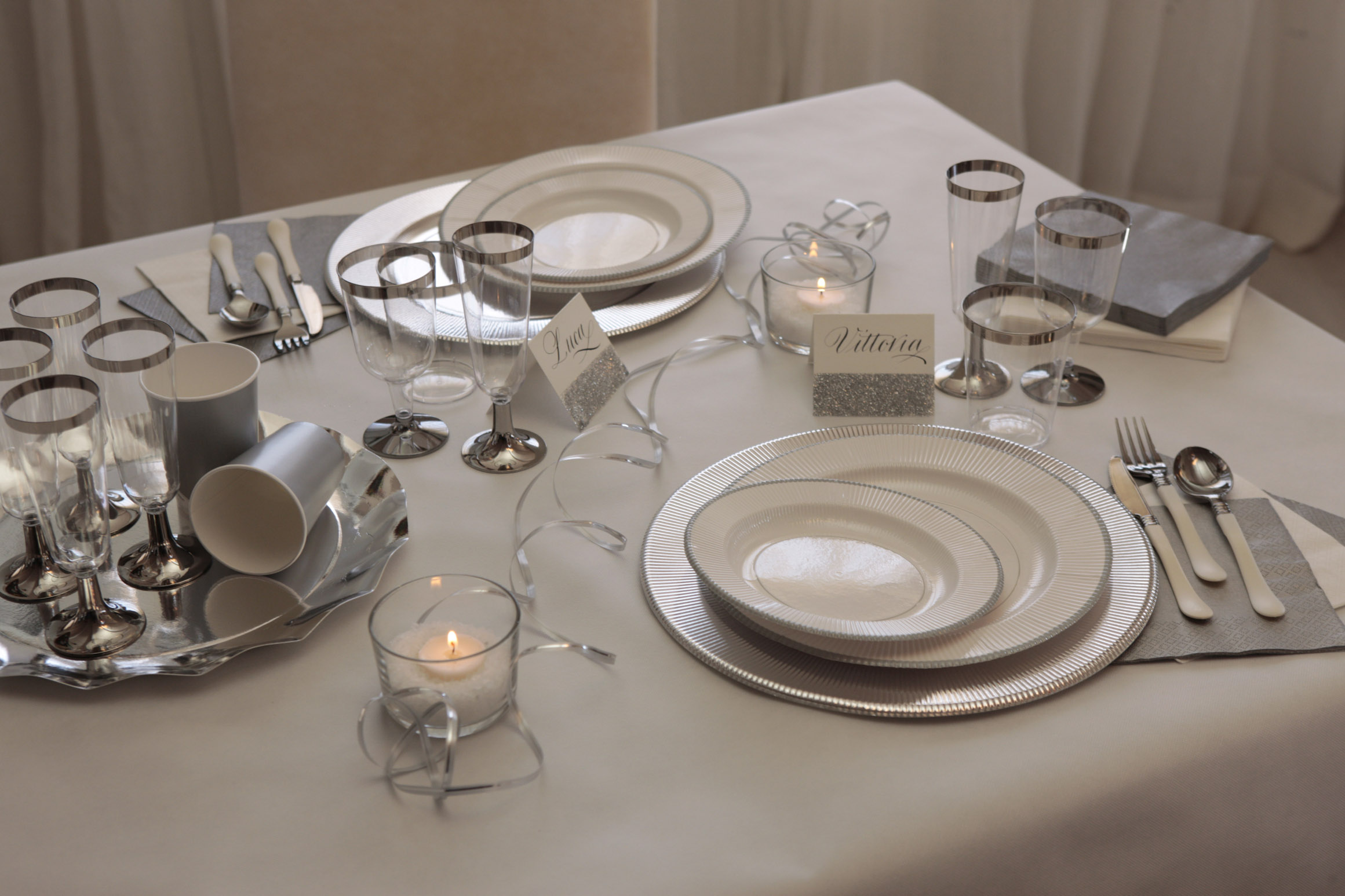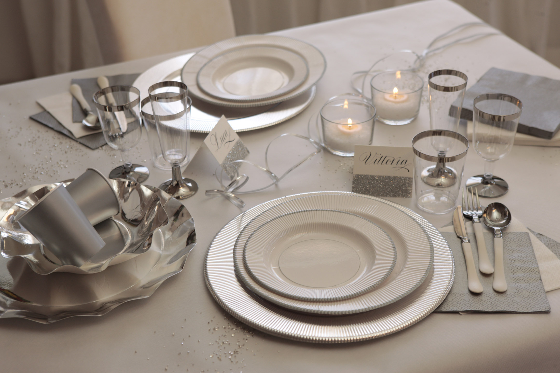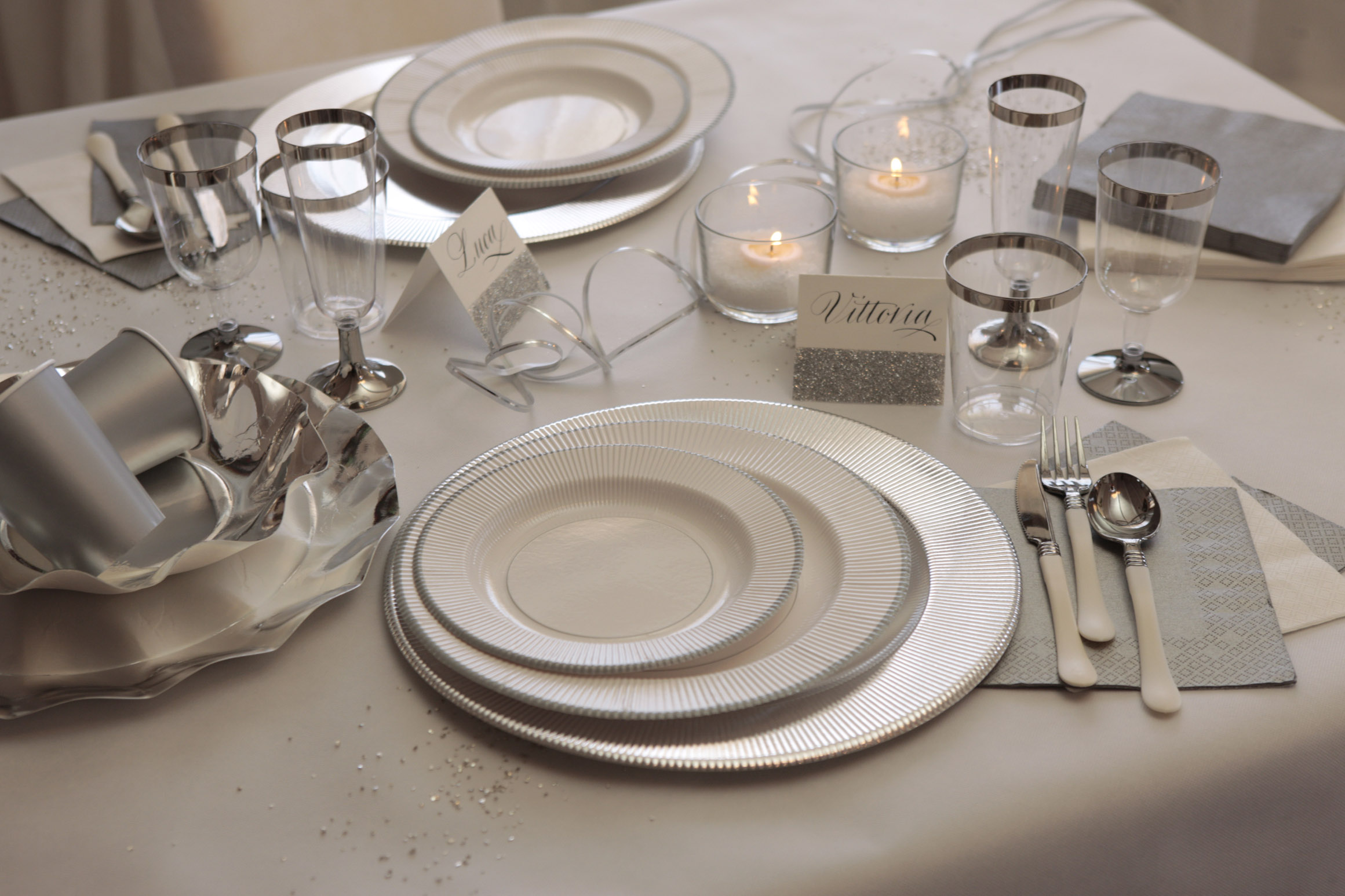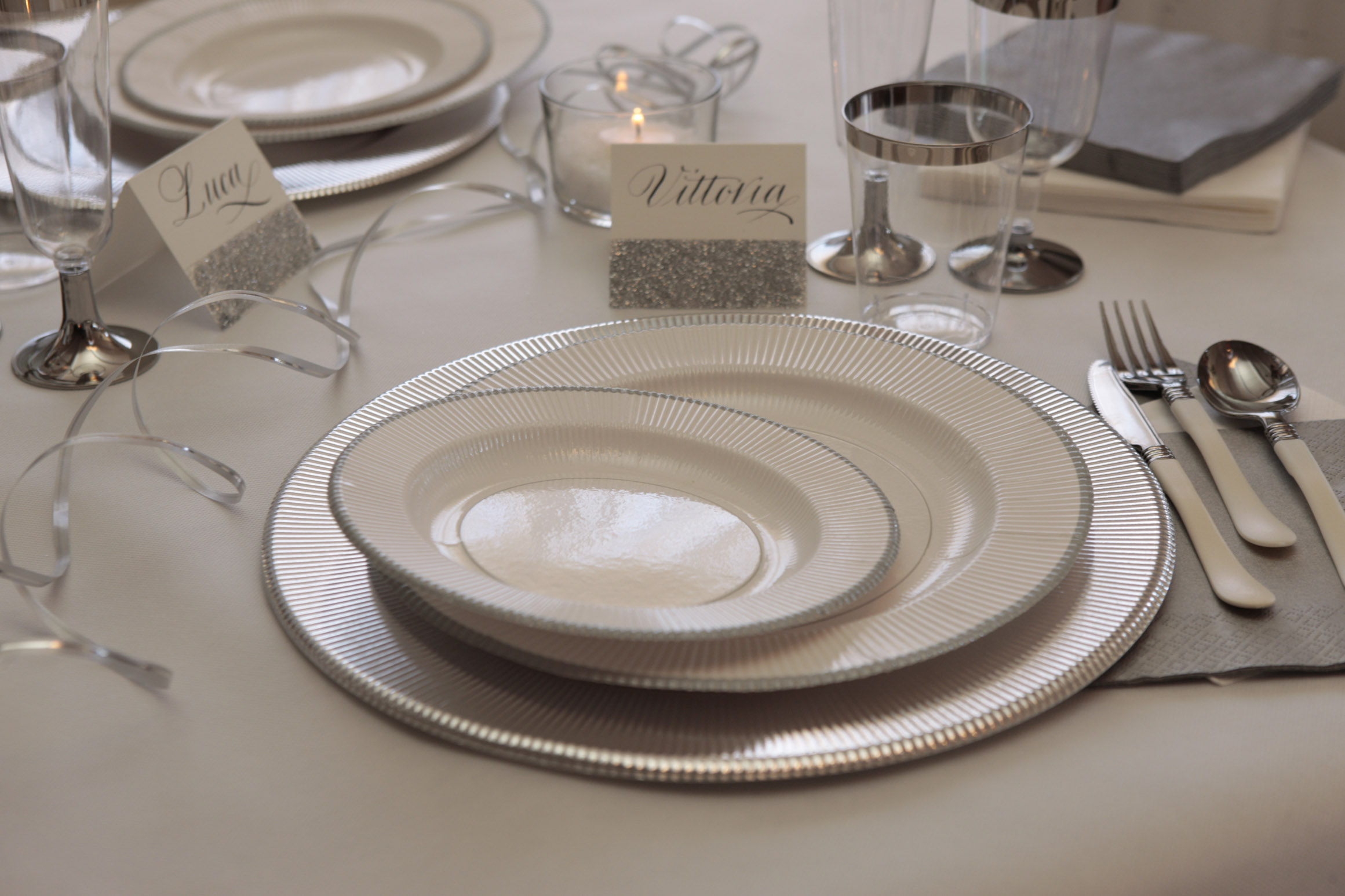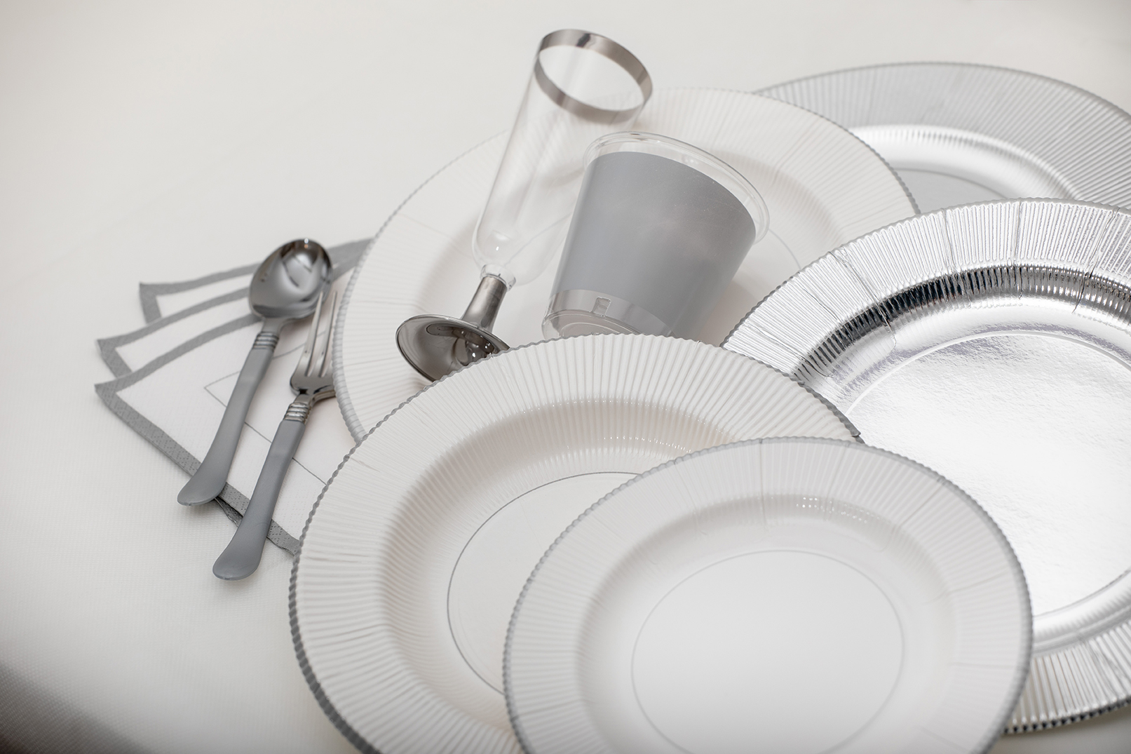 Tovagliolo in pura cellulosa 3 veli, 33 x 33 cm, Made in Italy. fondo bianco e doppio bordino argento.